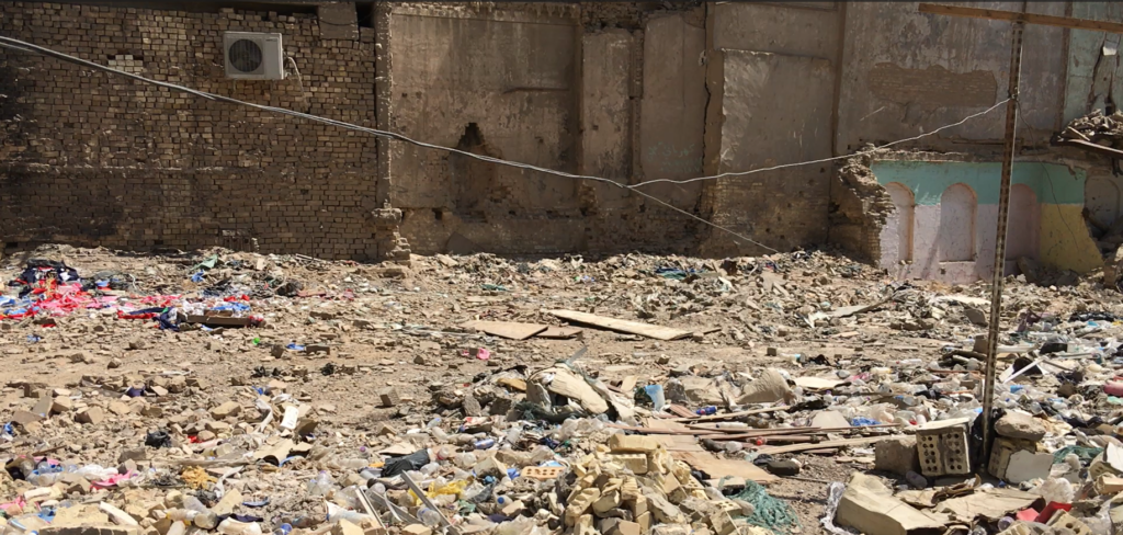 النفايات تحيط بارض دار ساسون بعد هدمه