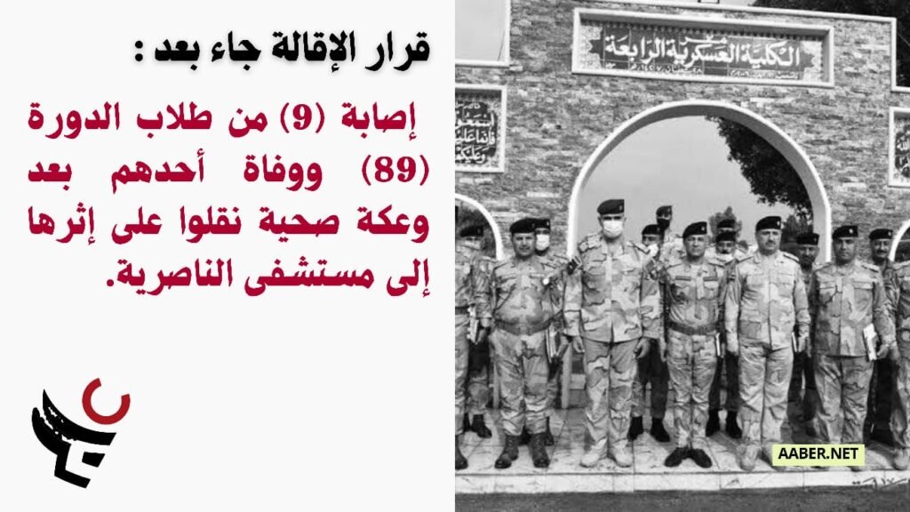 وأوضحت وزارة الدفاع العراقية في بيان رسمي أن الإقالة جاءت بعد تعرض تسعة طلاب لوعكة صحية نُقلوا على إثرها إلى مستشفى الناصرية، مشيرة إلى أن التقصير والإهمال في الإجراءات الوقائية كان السبب الرئيسي في ما جرى.