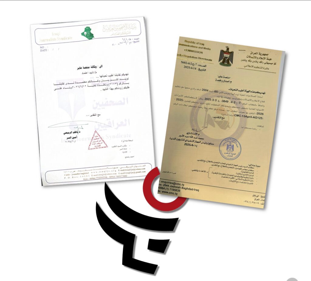 حصلت منصة “عابر - صحافة لأجل الإنسان” رسميًا على اعتماد نقابة الصحفيين العراقيين، إلى جانب رخصة العمل من هيئة الإعلام والاتصالات في العراق، لتستكمل بذلك كافة الإجراءات القانونية المطلوبة لعملها الإعلامي داخل العراق وخارجه.