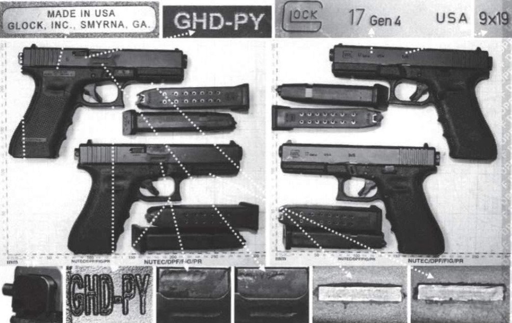 تُظهر وثائق من الشرطة الفيدرالية البرازيلية، حصل عليها اتحاد فوربيدن ستوريز، أن سلاحاً من طراز غلوك عيار 9 ملم صُنع في الولايات المتحدة، سبق أن تم استيراده إلى باراغواي عبر شركة GHD (رمز المستورد GHD-PY)، ثم تم محو رقمه التسلسلي قبل ضبطه في البرازيل.
