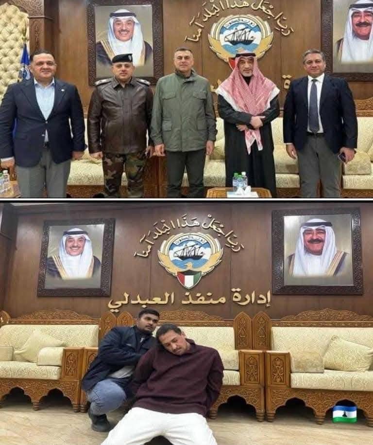 وتداولت المواقع صور لمحافظ البصرة اسعد العيداني في الحدود الكويتية وصورة اخرى الخالدي في نفس المكان وهو معتقل
