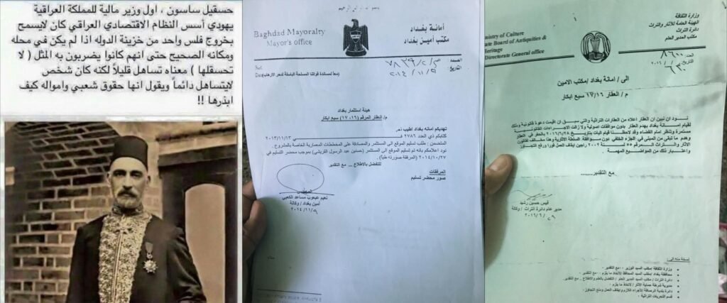 وعن "دار ساسون" قال كاظم إن دائرته رفعت دعوى قضائية حول التجاوز على أرض منزل ساسون حسقيل، وشكلت لجنة مع أمانة بغداد لإيقاف التجاوزات، لكن ورغم كل تحركات الإدارة، فلم يتبق من دار "ساسون" سوى الأرض وتمت إزالة البناء بالكامل.