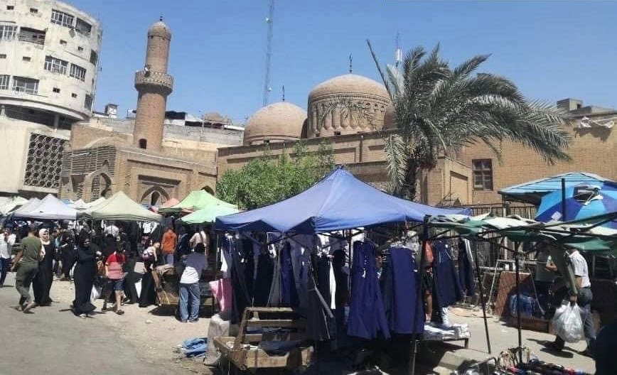 "الحاجة بـ1000" بأعلى صوته ينادي علي، خريج جامعة الإدارة والاقتصاد أمام عربة لبيع المواد المتنوعة عند بوابة "جامع مرجان" الأثري بالقرب من سوق الشورجة أكبر أسواق العراق.