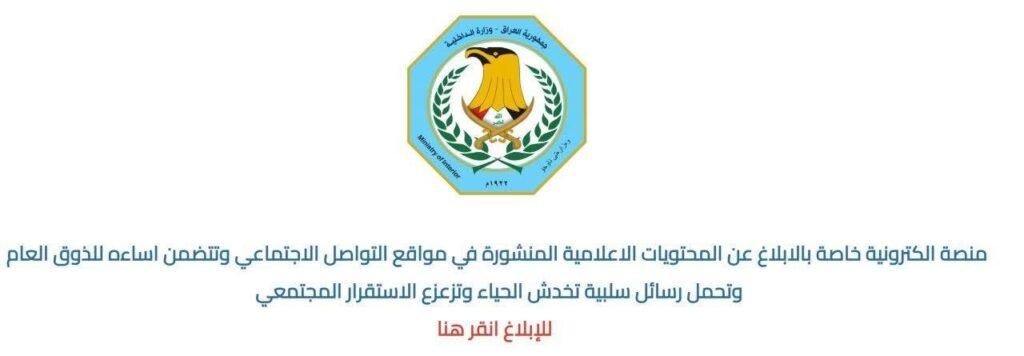 في يناير \ كانون الثاني من العام 2023 أنشأت وزارة الداخلية العراقية منصة للتبليغ عما أسمته بالمحتوى الهابط والمسيء، والذي ينشر على مواقع التواصل الاجتماعي والإعلامي، أسمتها منة "بلغ "