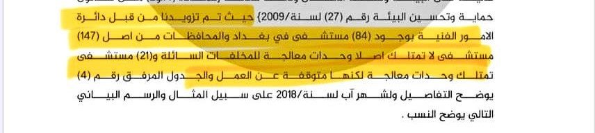 على العكس من ذلك، يذكر تقرير المرصد الراقي لحقوق الانسان أن مجمع مدينة الطب يُلقي بمفرده مخلفات أكثر من 1000 مريض يوميًا في نهر دجلة المجاور.